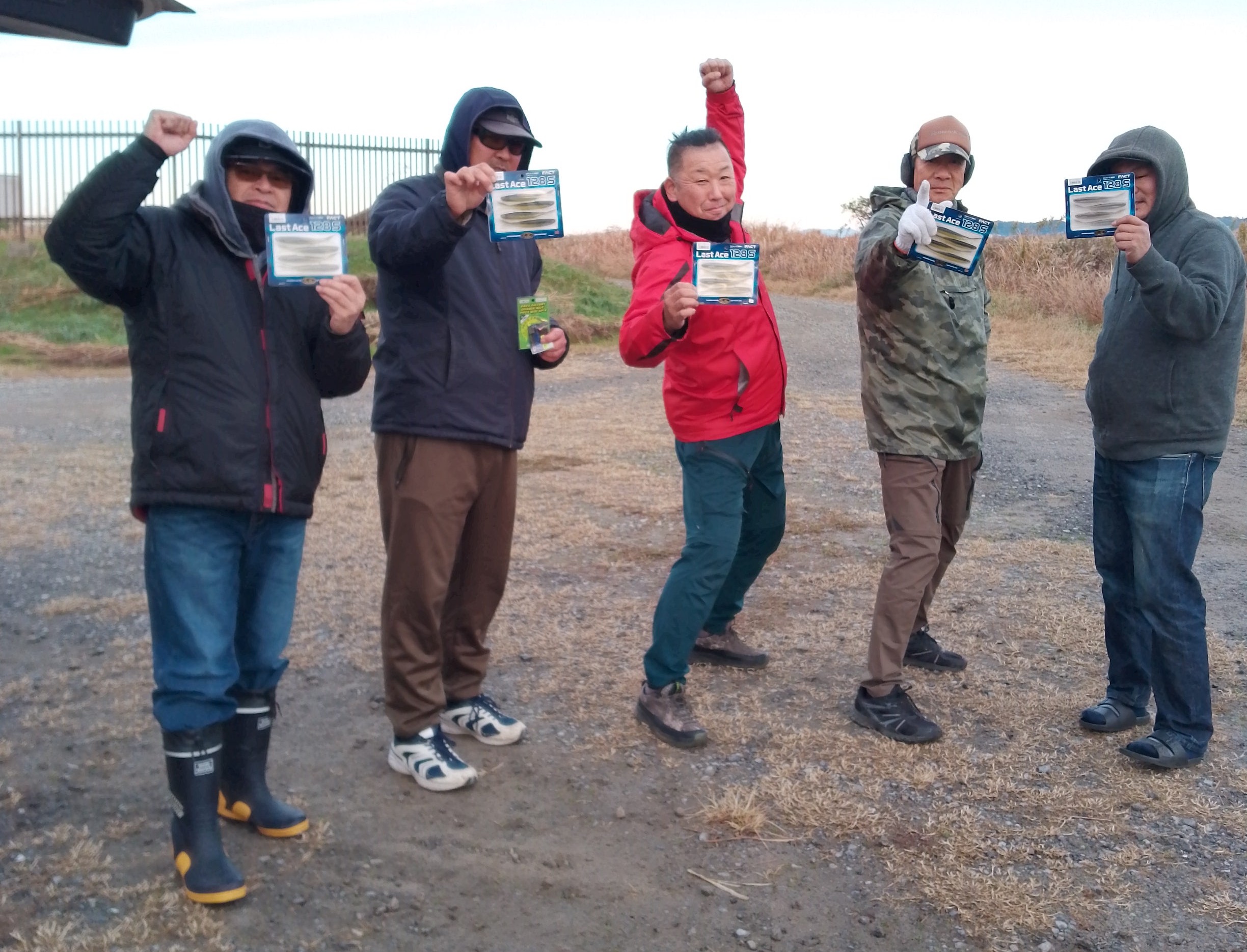 今日は今年一番の冷え込みになったようですが、午前中の風の吹き始めにアジャストされて上原さんと高橋さん2名の方がナイスサイズを見事にゲットされました!その後は北西の風が強くなり、バイトも遠のき、バスも口を使わない状況に・・。それでも気温が上がったお昼過ぎに照沼さんにヒット!今日の「第1回・野田奈川・初冬のバトル」はこの3名が初戦を制しました!!優勝 上原 昭彦 37cm2位 高橋 祥夫 36cm3位 照沼 祐二 20.5cm以上のように決定致しました!参加された皆様、寒い中長時間お疲れ様でした!本日、野田奈川初冬のバトルに参加された7名!本日の上位3名様!優勝 上原 昭彦さん 37cm2位 高橋 祥夫さん36cm3位 照沼 祐二さん 20.5cm (撮影 主催者 須田)今年も一年間「LBS水郷オープンバス陸釣りたい会にご参加頂きまして、誠にありがとうございました。来年は1月12日(日)に潮来マリーナ内「第2富士見池」で「第17回 LBS・新春耐寒初バス釣りたい会in富士見池」を開催致しますので、また来年も宜しくお願い申し上げます!新春耐寒初バス釣りたい会開催案内はこちら