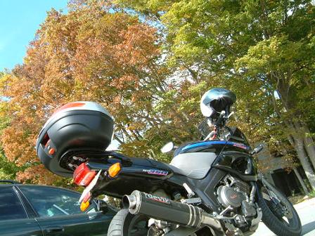 今日は休日です。天気も良いのでMotogpテープのDVD化をお休みしてTDMで散歩に出掛けてきました。行き先は久々に富士方面に決めました。・・・富士五湖をグルッと回ってきました。ルートは家を9:30出発し、環状2号線→保土ヶ谷バイパス→R16→相模大野駅前を通りR129へ→相模川沿い県道を通り小倉橋方面へ進みR412へ→R413(道志みち)に入り道志方面へ→道志道の駅で小休憩→山中湖で一服!思っていたより紅葉が進んでいました!山中湖を出発→R138→R137に入り河口湖をグルリと廻って西湖へ!平日のためか、余り観光客も居ないので静かです!西湖を出発→R139→R358に入り精進湖へ!途中のコンビニで買ったおにぎりを食べながら一休みです。残念な事に、どの湖からも雲に隠れて富士山は見えません!お腹も膨れたので、精進湖を出発→R139に戻り本栖湖を一回り。やはり富士山は雲の中!売店で缶コーヒーを買って湖畔で一服!・・・千円札を手に持ったまま売店に入ったらおばちゃんに笑われてしまった!?Tシャツにジャンパーで丁度良い季候で助かります!昼間でもHIDは充分明るく目立つので有る!本栖湖で帰宅ルートを考えた、このままR139を富士宮方面に進みR1で箱根越えする事に決めた!本栖湖を出発→朝霧高原を過ぎた所でやっと富士山が顔を見せてくれた。富士市でR1に入り箱根を目指す。・・・しかしこの辺りはR1のペースが速く70~80km/hで流してもバシバシ追い越されてしまう!箱根に到着し芦ノ湖で一服。後は箱根を下り家を目指すのみです。19時少し前に家に到着!高速は一切使わずに約340kmの散歩が終わりました。因みに平均燃費は16km/lでした。・・・燃費悪!?