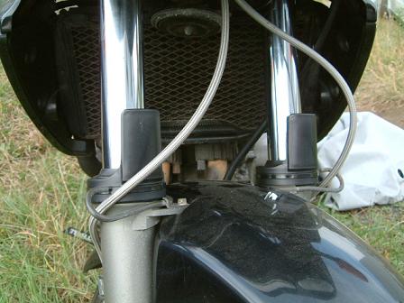 今日は休日です。またも懲りずに1999年WGPpテープのDVD化を進めました。今日は第6戦カタルーニャ,第7戦オランダ,第8戦イギリスGPをテープ→HDDにダビングしました。ダビング中天気も回復したので、先日入手した簡易フォークガード!?を取り付けてみました。ゴム製ラバーを巻いて上から被せタイラップで固定するだけの簡単な物です。明日もテープダビングは続きます!!!