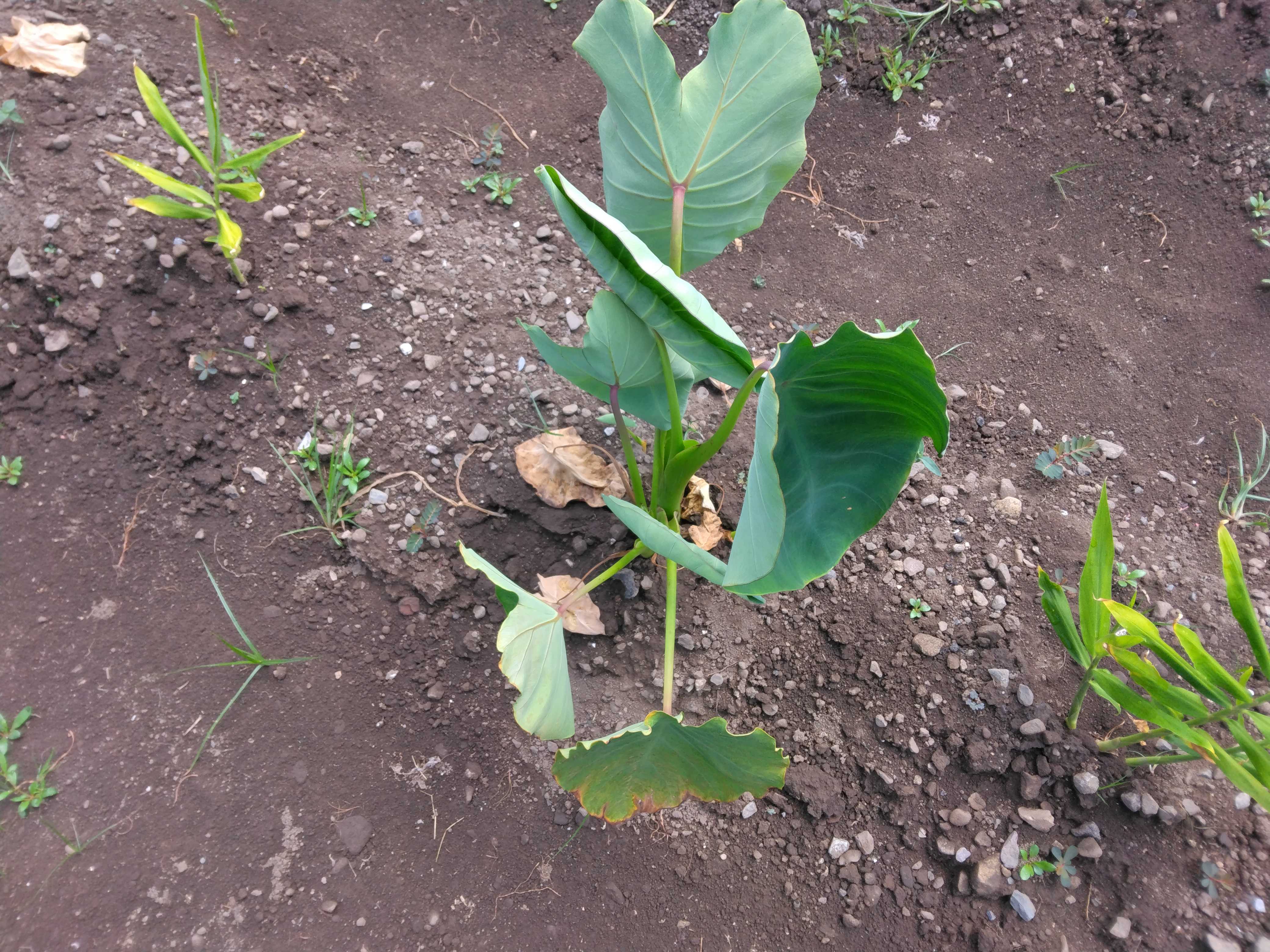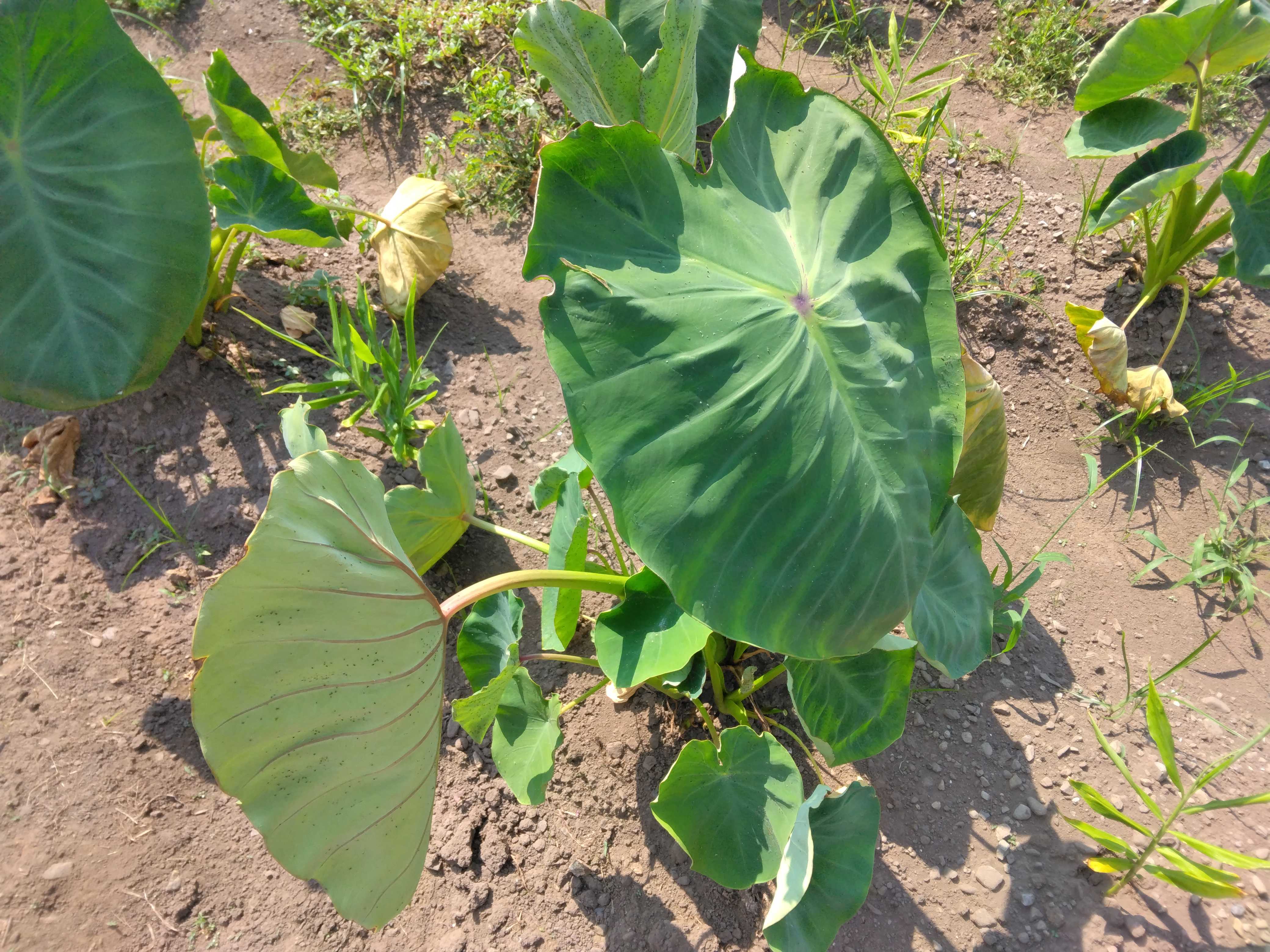 里芋の葉がかなり大きくなってきました今のところ順調に育ってくれていますが雨が全く降らないので水不足が心配ですね