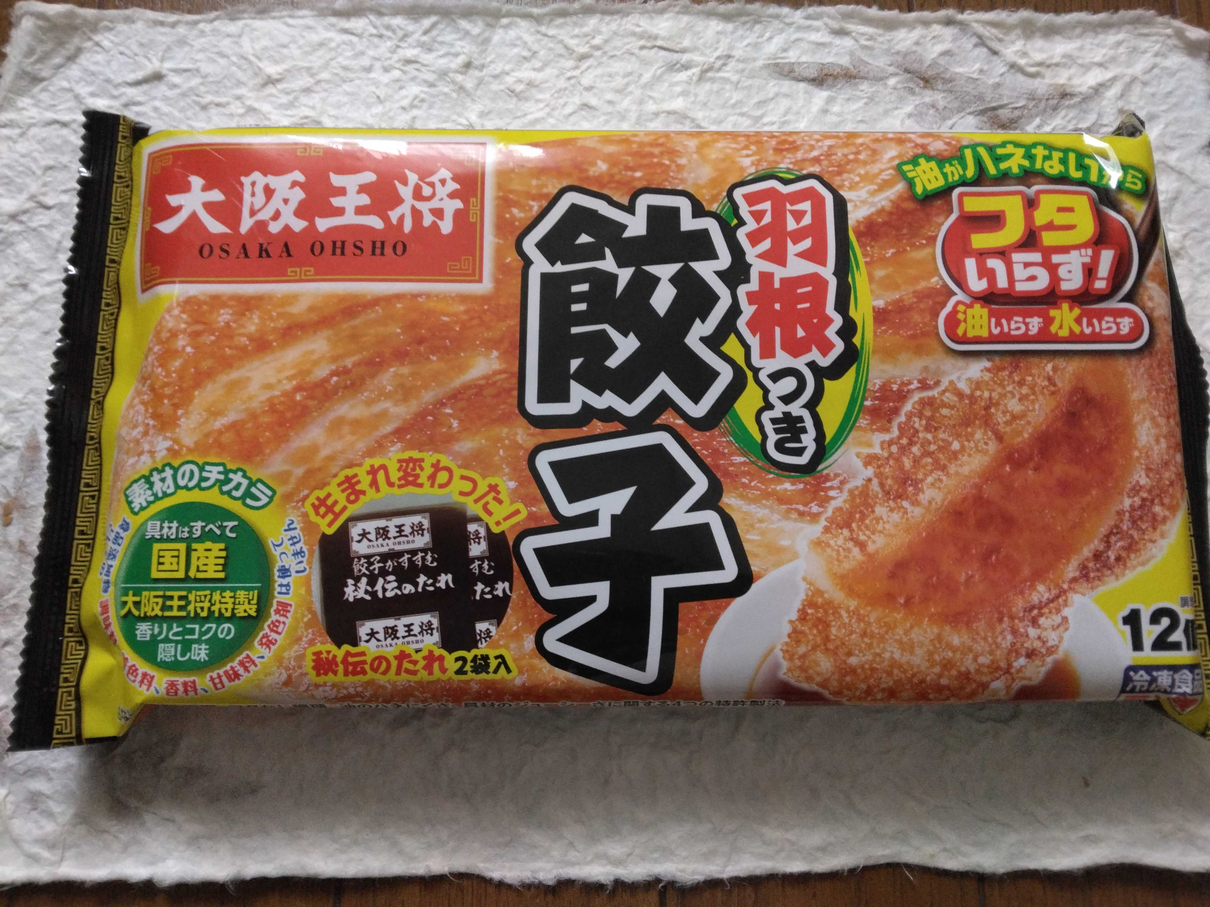 大阪王将の冷凍羽根つき餃子を買ってきて焼きましたフライパンに凍ったままの餃子を並べて焼きました餃子にお皿を被せてひっくり返すときれいに羽根がついた状態で取り出せました具材は全て国産みたいで美味しかったです
