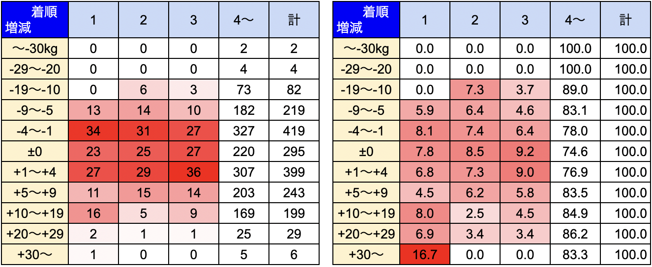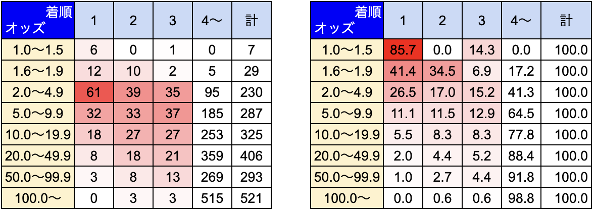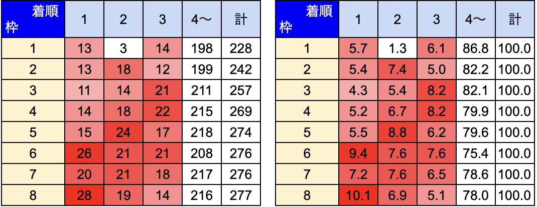 ※こちらのデータは、中央競馬で開催された 全競馬場 の短距離ダート戦を集計しています。