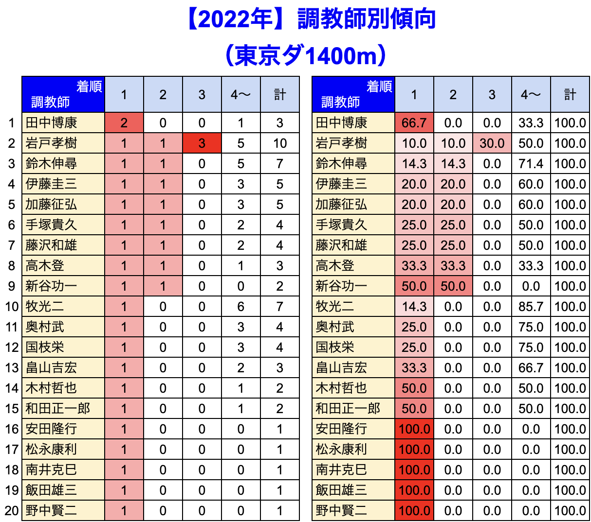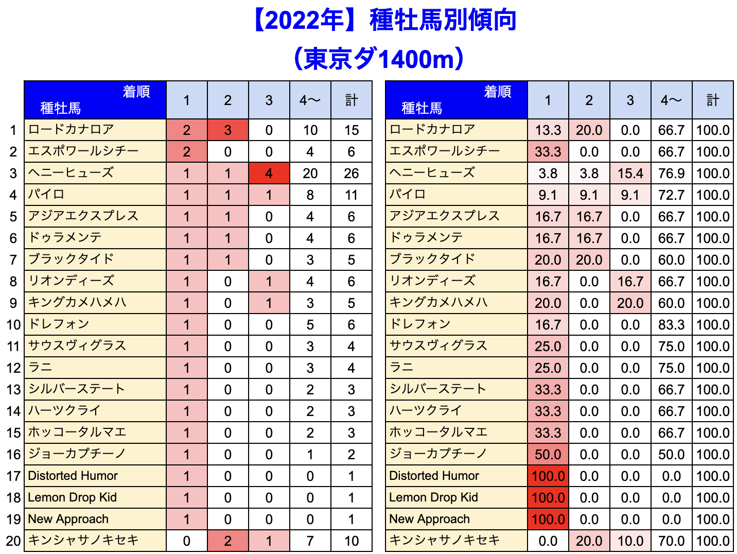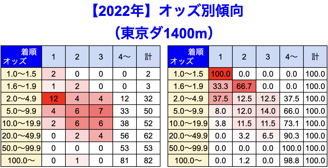 東京競馬場 の 1400m 戦を集計しています。