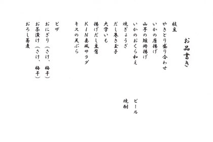 明日は、お酒をたくさん飲むらしい。誰って、KIN妻ではありません。Kさん×2、Bさん、Mさん、Pさんが集まり楽しい夜を過ごすらしいです。お品書きを作ったので食べたいものを注文してください。(^_^)v明日、用意でくるものは14~15種類。そしてビールと焼酎。KIN妻は子供のご飯といっしょにご飯食べますので明日は賄いに徹します。。。きっと明日もあんなことやそんなことが起きるのかなぁ?( ̄ー ̄)初めて来る人は自分の家の広さと比較しないように・・・(笑)狭くても文句言わないように・・・寝ていく人は布団が小さいと不満に思っても目を瞑ってください。明日は楽しい夜が待っているはず。