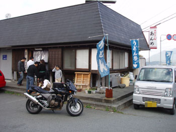 今日は、新蕎麦早食い競争に参加するために長野のkawboyさんのところのおっこと亭に行って参りました。ツーの詳しい行程はKINさんのブログを参照。参加者は女子の部(鳥頭さん、KIN妻他8名)男子の部は(kamemajinさん、ken-zさん、KINさん他7名)まずおっこと亭についてびっくり。こんなにたくさんの方々が来ていました。11時過ぎからの早食いは余裕で大丈夫なんて大きな口をたたいておきながら1人前を食べたあたりからまったく喉にお蕎麦が通らず結局圏外に・・・・(後にkawboyさんの奥様からの情報によると4位だったらしいと聞きました)ゼッケン1→KIN妻ゼッケン2→鳥頭さんみごと女子の部の優勝を飾ったのは鳥頭さん。男子の部は惜しくもkamemajinさんが2位、ken-zさんが3位入賞。二人共参加賞をいただき満足でした。こんなツーショットを早食いの前に捕らえました決して、お説教をされているわけではありません。何か相談をされていたのですが・・・・(笑)何をお話されていたのかは不明です。今回はチョットいつものツーと違い楽しいイベントに参加できkawboyさんに感謝です。(^^♪どうもありがとうございました。