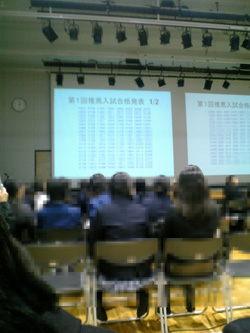 昨日は鎌倉から帰りご飯の支度をしていたらバイトに出かけていたはずの長女が気分が悪いと言って早退してきた。まさか・・・・・・ノロじゃ???┐(´~`;)┌今まで病気になったことがないだけに相当辛いのか?既に夜の7時。この日の休日当番病院を調べたら家の目の前の救急病院。電話してみると・・・・もう当番時間は終了したとの返事。症状次第では、急患で診ますので先生に確認してみます。との返事。下痢の症状もなく、吐き気だけならノロかどうかは今日は調べられないかもとの返事だが来てください。とのことだったのでまず本人だけ病院に行かせた。(家族は食事中)そして、今日が次女の私立の試験日。移ってはならないと、普段使用していない部屋に布団を敷いて部屋をあっためて私は病院に出かけた。処置室にいた長女はベットに座っていた。先生から、”お母さんですか?”と言われ、説明を受ける。”まだノロウィルスかどうかはわかりませんけど今は吐き気と微熱(顔色は悪い)だけなので調べられないです。”どうされますか?と聞かれても調べられないのにどうすることのもできないよ。本人も大丈夫だ。というので胃薬と吐き気止めの薬を出してもらい先に家に帰した。私は、夜の病院でひとり薬と会計待ち。待たされそうな気配だったので家に電話してKINさんに冷凍ご飯でおかゆを作ってと頼む。料理はまるでだめだがおかゆなら作れそう。。。。でもすぐに電話が鳴り、土鍋はどこと???20分以上待ち、預かり金5000円を払い家に戻る。家に帰るとちゃんとおかゆを食べていました。( v^-゚)Thanksそして、今朝は7時に家を出る次女を送り、家事をこなして病院へ行き昨日の精算をする。試験開始が9時。面接開始が10時20分。受験番号が183。携帯を持っていないので待ち合わせをどうするか?そして11時過ぎ高校へ到着。続々と終わった生徒は外へ出てくる。いったい何人受験しているのか?ようやく11時35分頃、階段から下りて来ました。でも気付いていないよ。キョロキョロ・・・・・・さあ、14時からの合格発表までどうしょうか?すごく中途半端。家に帰るような時間はないが・・・・まず、お昼を食べるがこの店で2時間は無理と判断して即、店を出た。しらばく学校の最寄駅を散策してみる。ここへは夜しか来ないので昼間はよくわかりません。(笑)1軒の店で下着を買ってあげました。その後、時間を持て余してマク○ナ○ドでシェイクを飲む。30分程時間をつぶしたの後、再び高校へ。15分前だったが、ホールには既にたくさんの人が・・・・14時ちょうどに、目の前に番号がでました。視力が落ちてきて座っているところから自分の受験番号が見えないらしい。その後、合格通知書を受け取り家路に着きました。あくまでも本日はすべり止め。本命は来月23日。1ヶ月あると思うな。いま更じたばたしても仕方がないけど当日病気にだけはならないで、ほしいです。いや~ぁ、昨夜からホントてんてこ舞いの日でした。たぶん、長女はノロではないですね。いま寝てますけど・・・・・