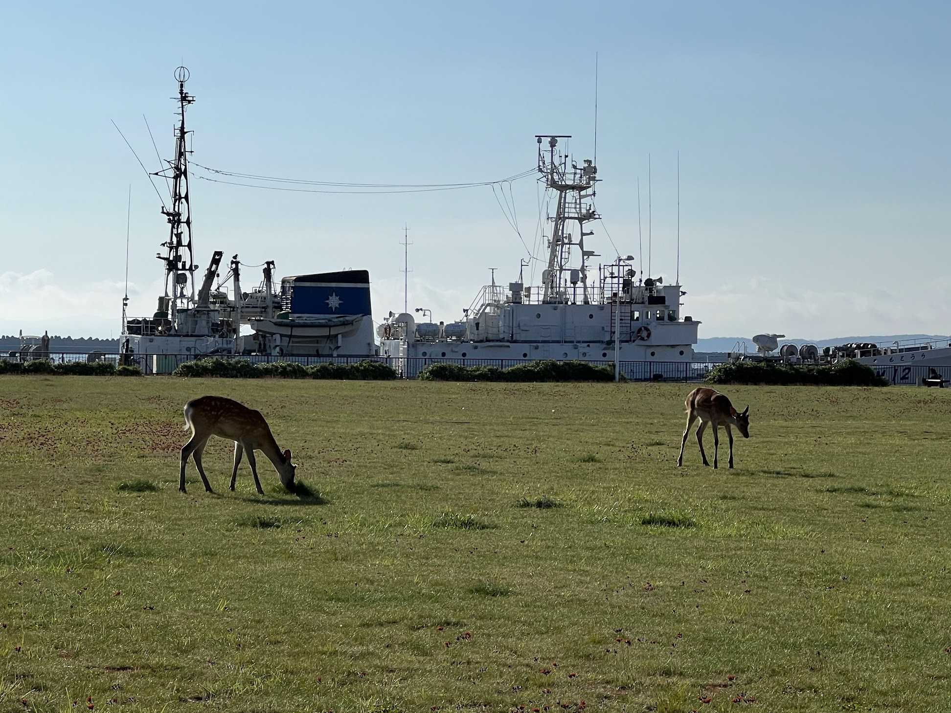 朝、ホテルの周りを散歩したら、なんと野生のシカが。
