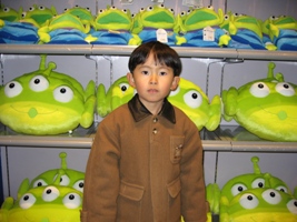 2006年12月4日東京ディズニーランド(2)~過去のディズニーリーゾート旅行の“こうっぺ&ゆきっぺ記念写真”を紹介~トゥモローランドにあるショップ“プラネットM”にて。※旅行記→コチラ