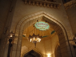 今日のこうっぺ&ゆきっぺ東京ディズニーシー初日(10月16日)の晩ごはん。“カスバ・フードコート”にて“3種のカリー(チキン、ビーフ、シュリンプ) ライスとナン付 990円”※大きな写真は“カスバ・フードコート”のページ参照ください。1回目の“ファンタズミック”を鑑賞後、わざわざこの店のあるアラビアンコーストへ。もう歩き疲れていたので、頭もボーッとしていて、注文数を間違えてしまい、また並び直すという羽目に。食べる前に疲労度倍増でした(笑)。このお店もハウス食品提供で、カレーの味は無難ですが、子供たちは見た目でなのか臭いででなのか“シュリンプ”だけは食べられませんでした。せっかく大きなエビが入っていたのにな。