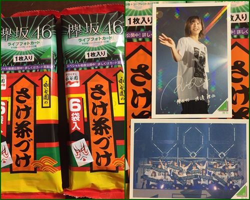 今日のかつっぺどういうつながりなのが欅坂46が永谷園とコラボ。永谷園のお茶漬け“ライブフォトカード全19種+シークレットカード5種”入り。やっと近所のスーパーでも見かけるようになりました。箱買いしたいところですが、そう毎食お茶漬けというわけにもいかないのでとりあえず2袋。“危なっかしい計画”のラスト全体写真とキラキラ輝く理佐のシークレット!こりゃぁ早く2袋食べ切って、さらに追加購入しなければ(爆)欅坂46 個人写真集は↓コチラから♪ その他お買い物ならAmazonで♪