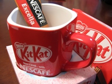 100円くらいで売られている KitKat1箱 インスタントカフェオレ1袋 、そして 五角のマグカップ 。定価は210円(税込)。