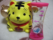ゆきっぺには“ 水時計 ”。赤い玉が落ちてきてイルカ絵の輪がくるくる回るだけのものですが、ゆきっぺはすごく気に入ったみたいでずっと遊んでいます。