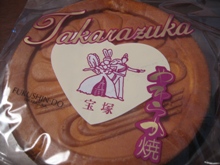 先日、宝塚へ行った際に購入。直径は17~18cmくらいだったかな。厚さもそこそこありました。屋台のベビーカステラが一日経ってちょっと固くなったという感じでしょうかね。