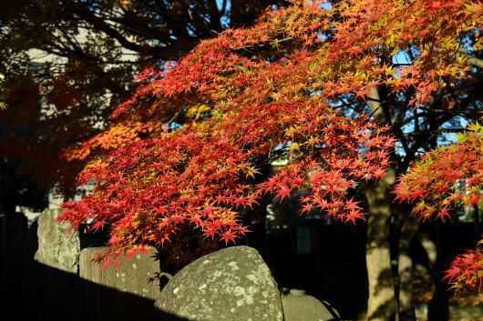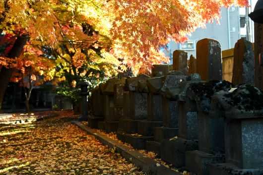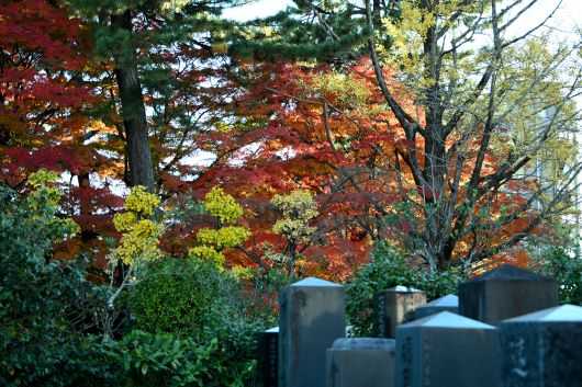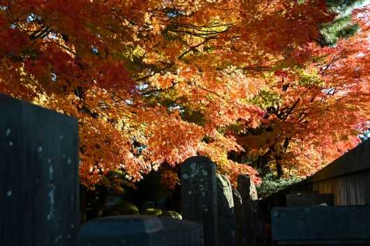 墓石と紅葉と午後の斜光、私のカメラにどう写るかはさておいて、シチュエーションとしては申し分ない。ここは誰にとってもいい撮影場所らしく、何人かと競合することがあっても「どうぞ」「あっ、すいません」などとみんな機嫌よくシャッターを押している。きっと、私と同じようにいい場所を見つけたとワクワクしているに違いない。