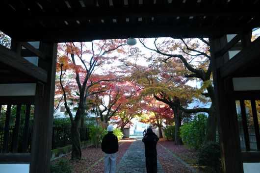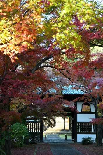 北から寺に入ったので、南の本殿前から山門の方へ出る。山門でも数人がカメラを持って行ったり来たりしている。阿吽の金剛力士像などは置かれておらず、文字通り山門だけが建っていて、その「しのびやかな」たたずまいがとてもいい。そういう雰囲気をカメラで写し取れたらいいだろうとずいぶん考えたが、まずはシャッターを押すしかないと思い直すしかなかった。