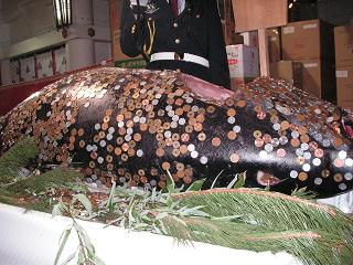 帰省第二弾の三日目です~。私の実家から帰る途中、えべっさんに行ってきたよ。いや~・・・すっごい人ごみやったわ。どこからこんなにワラワラと人が沸いて出てくるんだか。寒いのに、家でじっとしてりゃいいのに~・・・って人のことは言えないけど(^^;拝殿近くになるともう、身動きとれない状態。向かって右端のほうは、多少空いてるかんじだったけどどうせなら招福マグロにお金貼りたいや~ん。なので、向かって左端の、一番混んでる場所へ。前後左右から押されて、いいかげん嫌になってきたけどこれだけ混んでると押されてるフリして後ろの人にもたれ掛かっててもバレないかも(* ̄m ̄)プッようやく招福マグロに到着。この招福マグロ、近くの漁業組合から奉納されるらしいんだけど十日えびすが終わった後、関係者の胃袋に奉納されるらしい。1500~1600人前だってさ( ̄¬ ̄*)ジュル招福マグロにお金を貼って拝殿でお参りしたあと、福笹売り場へ。どうせなら、一番可愛い福娘からもらいたいやん(笑)一通り品定めしてから、福笹購入。招福♪招福♪明日の開門神事福男選び、このページでシミュレーションできるので興味のある方はどうぞ~♪