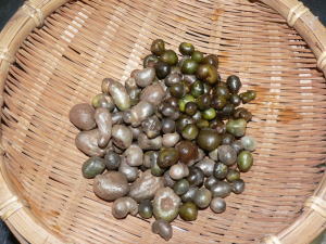 やまいもの実?種?むかご。今日は「むかごごはん」むかごむかごごはん 木になっているむかご