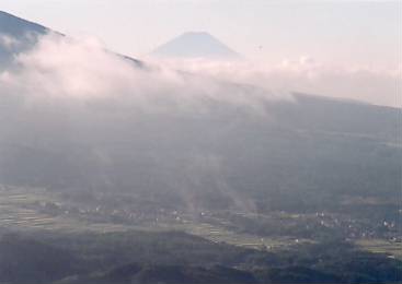 朝の5時。 トントンと窓をたたく音で目が覚めた。 起き上がると昨夜のおっちゃんがいた。 「わしはもう出るから~」 車から降りて挨拶。 名刺を交換した(相変わらず旅先でしか配ったことのない名刺…)。 「また大阪にくる時は連絡して」と。 おっちゃんはこれから中津川に向かうという。 「また行きます!」 「それじゃ」と言っておっちゃんは行ってしまった。 さて、早起きしたことだし朝のドライブでもしようか。 立石公園から北上すると霧が峰へ行けるのを昨日地図で確認していた。 ボチボチ出発。 走り出したはいいが霧が濃い。 とりあえず白樺湖まで行って戻る。 途中、写真を撮っている人たちを発見。 「何撮ってるんですか?」と聞いてみると、 「富士山が見えるよ」と。 ん??? どれが富士山? 見ると遠くにそれらしき山が。 おおっ?あれが富士山か~! 2度ほど富士山麓に足を運んだが姿をみたことはなかった。 こんなところで見ることができるとは…。 人生初、この目で見る富士山である。 小さな小さな富士山だが、なんか得した気分。 それからカーブの多い道をのんびり運転。 美ヶ原に到着。 霧も晴れて眺めは最高。 しかし、風が猛烈だ。 まわる風車の羽が落ちるんじゃないかと心配になる。 しばらく遠くに見える景色を眺めていた。 すごい眺めだな…。 寒いのであったかい紅茶を買って車へ戻る。 さて、どこへ行こう? 地図を見ると近くに林道があった。 蝶ヶ原林道、国道254号の三才山トンネルの上の三才峠を通る林道である。 細い県道を走りようやく入り口。 なかなか走りやすいダート。 ううん、気分がいいゼ。 三才山峠に到着。 途中、下を走る国道が見えたりして。 林道を堪能したら腹が減ってきた。 ラーメンを食おうと思ったが具がない。 ただでさえ寂しいインスタントラーメン。具が無いとなると寂しさは倍増する。 さて、どうするか? 車を停めてふと見ると野生のミツバが生えていた! おお、神の恵みだ!!! 他にはオオバコが生えていた。 オオバコは食えるということを春に買った山菜の本で読んでいたのでミツバと一緒に摘む。 それから道の駅あおきに行ってラーメンを食す。 ミツバはいい香り。 オオバコは…、雑草のような匂い。 まあ、雑草だもんな。 なんとか具の入ったラーメンにありつけた幾三だった。