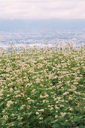 さて、ワサビ農園を出て高ボッチ高原へむかう。 このあたりは幾度か訪れている土地なのでな~んとなく道はわかる。 初めて来たのは中学の時かな。家族で白馬へのスキーだった。 せっかくのスキーも大雪でリフト乗り場が埋もれて滑ることができるコースは一部だけだった。 帰りは名神が雪で通行止。SAで一夜を明かしたな…。 そんなことを思い出しながら走る。 松本市内から県道63号に入り、東山山麓広域農道という道。 地図を見るとこの道から高ボッチ高原に近道があるようだ。 しかし、かなりマイナーな道のようで、地図を見てもどこなのかもはっきりしない。 ここは今までの経験を生かして勘で走るしかない。 適当に曲がり山を登る。 途中、広い蕎麦畑から松本市内が見えた。 少し雲が多くなってきたが眺めはいい。 車を降りてじっくり蕎麦を見る。 この植物からあの蕎麦ができるのか…。 不思議なものだ。 などと考えながら写真を撮り、さらに山を登っていく。 両脇の木々が霧に濡れてなんともいえない風景を作っている。 この景色を見れたのなら道を間違えていてもいいような気がする。 しかし、本当にこの道??? かなりの距離を走ったのでやはり引き返すのは嫌だな。 本音が出る…。 細い急な坂が続く。 突然視界が開けた。 霧に包まれたその景色はなんともいえない。 その道をしばたく走ると高ボッチ山荘の看板が。 おっ、勘が冴えていた。 見事、目的地に到着したではないか。 ウキウキで走る。 しかし、霧に阻まれ景色は今ひとつ。 車を停めて下界をながめようとするが濃霧で見えない。 ふと霧の切れ間が…。 その切れ間から見えた景色。 最初から晴れていたら何とも思わないのかもしれない。 この時、最高の景色だと思った。 これだからやめられない。 他人にとっては何ともない普通の景色かもしれない。 でも、今、俺の目に映るのは最高の景色だ。 夏の北海道でもそう思った。 観光マップに載っているわけでもない、別に絶景スポットとして有名でもない美深峠。 しかし、夕暮れ時、金色に輝いた森の美しさは脳裏に焼きついている。 言葉もなく眺めていたらすぐに霧に包まれた。 とにかくこの道の終点まで行こう。 ウネウネした道を走る。 路肩工事のおっちゃんたちの横を通った。 標高があがるにつれ、霧もなくなった。 ううむ、気持ちいい!!! そして行き止まり。 駐車場にがあったので入ろうと思ったが、有料らしいのでやめた。 路肩に車を停め、はるか下の街を眺めながらラーメンを食らう。 いつものラーメンがうまく思える。 なかなかのおかずだ。 そこから諏訪湖へ下る。 途中、めっちゃ細い道を通る。どこだ?ここは? ふと見ると中山道の看板。 知らぬ間に中山道を走っていたようだ。 かなりの急坂もあり、低速ギアでエンジンをうならせながら走る。 今は舗装だが、そんなもの無い時代は歩いたんだよな。 そんなことを考えていると国道が見えてきた。