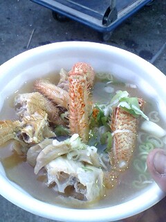 これが、羅臼の海開き祭りの食事だ~! まずは毛がに! カニの香りが最高! そして、 ウニ! これは包丁でただ切れ目を入れただけ。 指ですくって食べるのだ! なんとも贅沢な一品! お次は… トド肉の炒め物! 初めてのトド。それだけで楽しかった。 お腹も満たされて気分は最高。 でも、この後にまた送迎があったのでビールが飲めなかったのが残念無念…。 それから祭り会場を散策。 何を見上げているのだろうか。 彼らの視線の先が気になる。 干してあった魚。 そのうち日が暮れてきた。 みんなワイワイといい感じ! 祭り会場で十分に楽しんだ後、宿の仕事の送迎をして今夜の宿、民宿いしばしの別邸へ。 ここでは関東から来たというSさん夫妻、お茶の水大学の先生2人とワイワイ飲んだ。 しかし、疲れが溜まっていたのか、日付が変わる前に眠くなって一足先に布団に入らせてもらった。