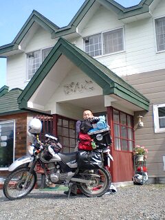 雨に打たれた翌日。 なかなかいい天気だ。 毎日続いてくれたらな~って思いながら準備。 九州熊さん、東北熊さんと3人で、RHぽんとから津別峠を越えてチミケップ湖へ。 湖畔の高級ホテルの犬と少し遊んだ。 熊さんと犬♪ 訓子府で給油。 さぼりマルシェGTで来た時から毎回寄る出光で給油。 最初に来た時、おっちゃんに道を尋ねたのが始まり。 給油してくれたお姉ちゃん、覚えていてくれたようで話しかけてくれた。 「今日はどこ行くんですか~?」 「う~ん、適当♪」 いつもなら缶コーヒーでも飲んで一休みするのだが、今から3人で飯を食うので給油のみ。 その後、小さな食堂で腹ごしらえ。 建物は新しいが、暖簾は古い。 道路整備かなんかで移転したのだろうか? お腹一杯になったところで、2人の熊さんと別れ、単独ツーリング。 林道を走りながら、今夜の宿のRHしたひろへ向かう。 まずは留辺蘂の瑞穂林道。 快適ダート。 途中、軽トラが停まっていて、おっちゃんが鈴を鳴らしながら作業していた。 その後、佐呂間の若佐から東芭露若佐線へ。 事前の下調べでは超フラットダートだったので軽い気持ちで走る♪ 気分良く走ってると、突然現れたのは… 敷きたての深砂利! あぶね~。飛ばしてなくてよかった。 そして、計露岳林道を走り、 久しぶりのRHしたひろ! まず、お母さんに挨拶。 したひろさんはまだ帰ってないようだ。 そのうち、九州熊さんがやってきて。 したひろさんが帰った頃には、お母さんが茹でてくれた採れたて枝豆とトウモロコシでお腹一杯になっていた! その後、数時間酒飲んで♪ 明日に備えて寝たのだった。