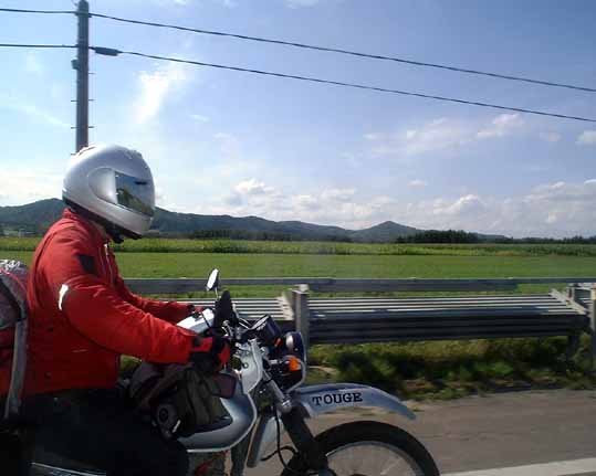 RHしたひろの朝。 朝食をモリモリ食べさせてもらう♪ 今日は、渋るしたひろさんを強引にツーリングに誘った。 風の旅人さん、したひろさん、峠幾三の男3人ツーリング! 去年は3人で走れなかったので、SL230でしたひろさんと走るのは初めてってことになる。 さあ、出発♪ 行き先はサンゴ草が咲いている能取湖・サロマ湖方面! 青空が広がり、暖かい。 気分良く走っていると、激写された。 北海道のツーリング大好き人間 ・・・気ままに更新♪より その頃、熊さんは… 北海道のツーリング大好き人間 ・・・気ままに更新♪より 退屈なのか、疲れたのか??? 新車のクロスケで足をあげて爆走♪ なんやかんやしながら走っているうちに卯原内に到着。 幾三は5年ぶりの卯原内。初秋の北海道の旅 part5 野付半島~知床~興部 赤いサンゴ草を期待していたが、茶色がかったところが多い。 少し残念…。 で、キムアネップ岬に向かう。 しかし、ただ向かうのではない。 したひろさんの青蛙号に乗って向かうのだ。 2ストに乗るのは初めて。 最初はエンストしまくり…。 何とか走り出したが、ぎこちない。 少し慣れた頃、ギアを落として加速した。 アクセルを開いたら…、 ブィーン!!! ハンドルから手が離れるかと思った~。 ほぼ同じ排気量だけど、ぱわーの違いに圧倒された。 何とかキムアネップまで到着。 卯原内よりはいい感じ♪(写真は色合いが微妙です…) 湧別で昼飯を食べ、3人は遠軽へ向かった。