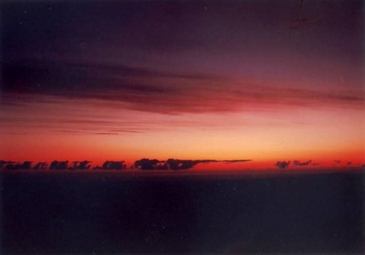 ヤンキーだと思い込んだ人達は天文写真家達だった。 星を見ながら立ち話をする。 北海道大学の学生らしい。 日高あたりにも、天文写真を撮るいい場所があるそうだ。 休みになると大勢でレンタカーを借りて山へ向かうとか。 話を聞いていると熱い想いが伝わってくる。 なんかカッコイイな。 俺が大学の頃、こんなに熱い想いになるほど打ち込んだことがあったろうか。 話しながらそんなことを考えていた。 寒さに負けて小屋に戻り飲み直す。 今度は安いウイスキー。 わずかな灯りと酒。 実に落ち着く空間である。 夜10時。 旅を続けていると、生活のリズムが早くなってくる。 普段なら酒を飲んでいるか、風呂に入っている頃である。 もちろん、今居る小屋には風呂などあるわけない。 灯りを消し、寝袋に潜り込む。 寝床は山小屋の中のベンチ。 寝袋の下にロールマット、中にエアマットという特別仕様。 寝袋の中にエアマットを入れるとかなり暖かいのだ。 この方法ならアルペンで5000円の寝袋でも十分夜をしのげる。 エアマットはそこそこの値段だったけど…(酔った時のネットショッピングは危険です♪) 眠ったかな?と思った頃、ギギーと戸が開き、 「すいません、トイレ使います~」という声。 外の天文部隊が山小屋のトイレを使うようだ。 「どうぞ~!」と言ってみる。 俺のトイレちゃうけどな…なんて思いながら。 その後、外からトイレに来る度に皆が一言声をかけてくる。 なんかここで寝ているのが申し訳なく思えてくる。 俺がここで寝ていなかったら、何も考えずに使えるトイレなのだ。 たまたま島根から来たおかしなライダーが泊まっているというだけで気を遣わせてしまった。 そんな事を思いながらまどろみ続けた。 ふと目が覚めると外が明るい。 会社に遅刻しそうな時と同じくらいの速さで寝袋から出て、カメラ片手に外へ駆け出した。 東の空から朝日が顔を出そうとしていた。