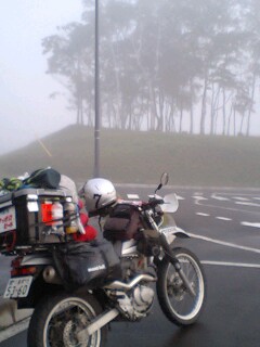 朝5時から走り出すが、まだ霧が出ている。 今日は最終日。 昨夜、フェリーの予約を苦労してなんとか取れたのだ(残り3席なのに電話受付時間を過ぎてしまって…)。 朝から望岳台へ行き、下る途中に適当な山の中へ。 明け方降った雨で路面はぬかるみ、走りにくい。 でも、霧でしっとりと濡れた木が心を落ち着かせてくれた。 こんなに潤いのある空気を吸ったのは久しぶりだ。 しばらく森の中に居ると、徐々に霧が上がり始め、木の間から光が届いた。 結局は行き止まり林道だったのだが、最終日の北海道、期待以上の時間を過ごせた。 引き返してダムの周りのダートを走り、 美瑛の丘へ。 遠くに美瑛の街を見ながらのんびりダート。 あてもなくゆっくり流していると、広島ライダーから電話。 どうも、九州熊さんと出会ったようで青池にいると。 ほんなら!ってことで合流。 広島ライダー達と上富良野の豚さがりを食べ、小樽へ向かう。 次第に十勝連峰が小さくなる。 また来年やな。 小樽に着き、今回の旅を思い出しながら船を待つ列に並んだ。