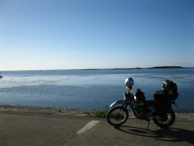 朝の納沙布岬に来て十数分。 うっすら明るくなり、有名な沈没船が見え出した。 しばらくすると、もう1人ライダーが現れる。 3人で最東端の朝焼けを堪能。 よくよく聞いてみると、隣で寝ていたチャリダーは立命館の大学院生、後から来たライダーは名古屋?ったけなの大学院生。 暇を見つけて走りにきたんだな~。 後から来た名古屋?の院生は、一緒にRHで泊まった人と合わなくて苦労したそうだ。 野宿2人組は、「RH平和の塔で泊まれば居心地よかったのに~」と笑いながら話す。 名古屋の大学院生はRHに帰り、2人はRH平和の塔に戻る。 テント、調理器具を片付け、バイクに積み込みはじめる。 すると、チャリダーが服を持ってきた。 「日本1周中なんですが、何か書いてください!」と。 差し出された服を見ると、出会った旅人からの一言メッセージがギッシリ書いてある。 何を書こうか? 考えて書いた言葉は「これも何かの縁」 旅で出会った人ってのは妙に記憶に残る。 なんでもないふとした時に突然思い出したり。 いつかどこかで。偶然、真っ黒に日焼けしたあのチャリダーと会う日が来ればいいな。