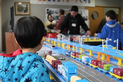 今日は1日休みの幾三。 いつもより少しだけ遅い起床で朝食を食べてからまったり。 一昨日、近所のスーパーでプラレールのチラシを見た粒男は「行こう行こう」と言ってました。 チラシを見ると、市内の公民館でプラレールの線路が組まれていて、マイ車両を走らせることができるとか。 昼前に出発。市内なのですぐに到着です。 粒男のリュックには新型大阪環状線と湘南色が入ってます。 全部持っていこうとしたので2つだけやで!と言っておきました。 到着して最初は線路をながめてましたが。 しばらくして係りのおっちゃんにお願いして湘南色を走らせてました。 その次は新型の環状線を走らせて満足そうな粒男です。 自分の車両を目で追ってますが、時折、他の車両が気になるらしく、貨物車の荷物積んだり降ろしたり。 主催者のおっちゃんはもちろん列車が好きな様子。 おっちゃんは走らせていた北斗星の電池が弱かったようで、他の係りの人に「単二の電池取って!」と頼んで電池を貰った時、 「サンキュー、ハンキュウー」という地味なダジャレ。 ちなみにプラレール上に阪急電車は走ってませんでした(笑) 午後は久しぶりに玉造駅に行ってみました。 久しぶりでも通過する列車に変わりはありません。 特急やくもが通った後に特急おきが到着。 やくもよりも短い編成です。 粒男は特急いなば、特急まつかぜとの見分けをどこでしているのかわかりませんが「おきが来た!」と言ってました。 幾三が初めて島根に来た十数年前は特急くにびきとかが走ってましたね。 特に気にしてなかったのでいつなくなったかもわかりませんが。 のんびりした休日を過ごしました。 次の休みはスキーに行けたらいいな~。
