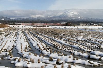 今日は昼から休み。 家でダラダラ過ごすか~と思ってたのですが、山陰のライブカメラを見ているとなんか天気ええやん♪ ってことで雪景色の伯備線へレッツゴー! が、出発して30分。睡魔に襲われました。 昨日は泊まり仕事。しかも大阪出張の疲れがまだ取れてない。 眠い目をこすりながらバイパスを走ってると見えた綺麗な大山(伯耆富士)。 今日は無理せず大山バックの貨物列車で終了~ってことで! 粒男はフジサン特急の動画を見てるので、大山をほんもんの富士山と勘違いしています。 「お父さん、富士山が見えるよ」というので、「あれは伯耆富士ってゆうんやで!」と教えておきました。 貨物が走る前に特急やくもが通過。 大山の奥の蒜山の方は天気が悪いのか、厚い雲がかかってます。 バックが青空で白鳥でもいたらよかったけどな~。 なんて考えてると貨物が通過していきました。 今日は荷物がいっぱいで景気がよさそうなJRFですね~。