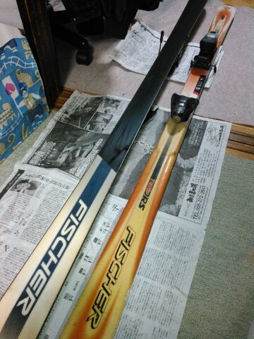今シーズンは数年ぶりにスキーに行きたいな~なんて思ってます。 粒男もゲレンデにデビューかな??? で、久しぶりにスキー板出してみたのですが、エッジが錆びてるのは当たり前、おまけに板の保護シートが黄ばんでました~。 ま、20歳の時に買って使ってなかったんやからそうなるわな。 当時はカービングスキーが出て数年経った頃、こんなに短くて大丈夫???と思いながら、この板で滑ったら曲がりやすくてビックリした記憶があります。 スポーツ店歩いてると、今の板はもう少し太くて短い気がしますね。 もう16年経ってるけど、最近は年に1回もいかんしな…、壊れるまで使おう(笑) 粒男の道具はいくらくらいするんやろう?と思ってアルペンに行ってみましたが、 安いやつで揃えて2万くらいかな~。 今はレンタルで十分かな~。 でも、買ってやりたい気もするし。 ま、1回行ってみて楽しそうなら考えよう。