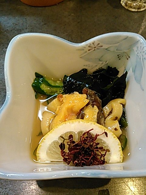 仕事終わり、千葉の飲み屋街を徘徊。 大衆居酒屋見つけて入ってみると、ホヤの酢の物がありました。 疲れた体に酢の物、最高です!しかも新しいのか臭くない。 イワシの刺身もほんのり酢でしめてありました。しめ具合もちょうどいい、見た目から想像できないくらい丁寧なお店です!また明日も来よう~。