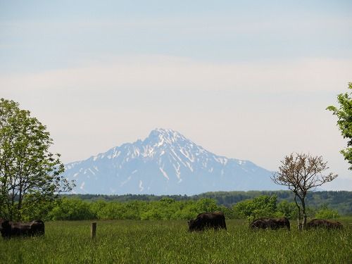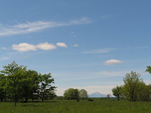 途中、幌延の手前で牧場越しに残雪の利尻が見えた。