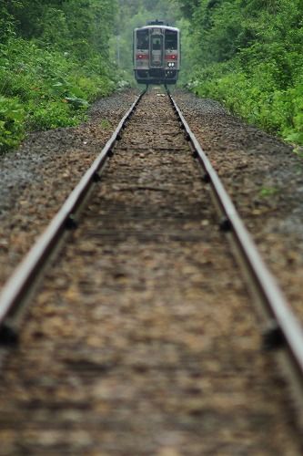 硫黄山と撮る予定が、木が茂っていて無理だったので緑の中を走る写真を1枚。