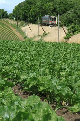 その後、甜菜?の畑の横を走るキハ54を。