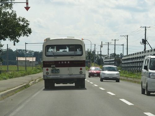 帰ってから改めて調べてみると、士別軌道で走っている「モノコックバス」というバス。「『モノコック構造』と呼ばれる、フレームの替わりに鉄板などの外板だけで強度を得られるように設計されたバス」らしいです。