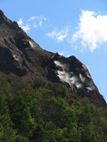 昭和新山の下を通ると、あちこちからモクモクと噴煙があがってました。