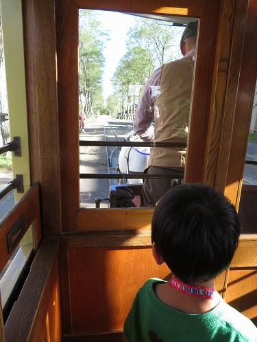 幾三と粒男は開拓の村で馬車鉄道に乗りました。