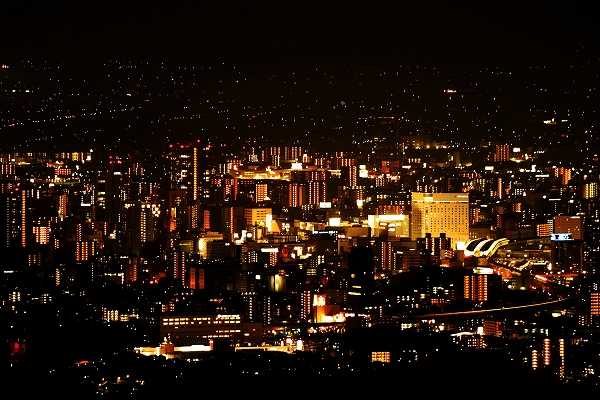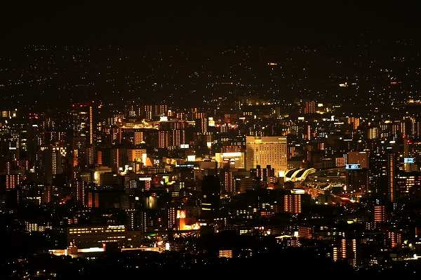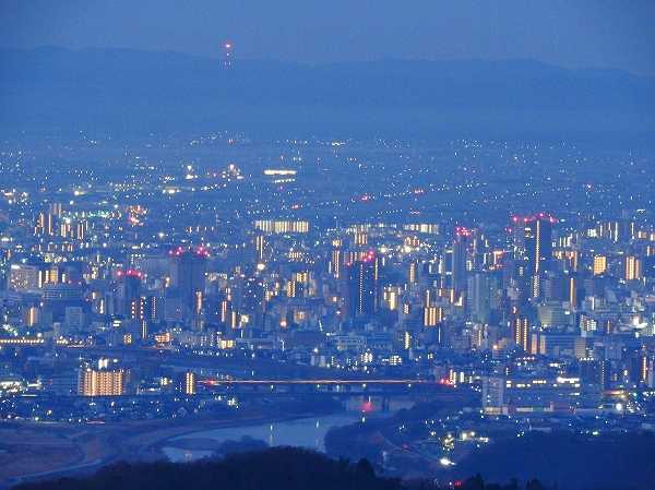 日が暮れて岡山駅方面の夜景がきれいに見え始めました。