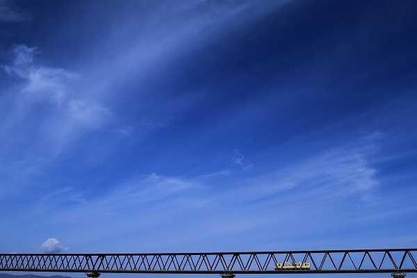 朝の岡山。サンライズ出雲・瀬戸だそうです。鉄橋を渡ってます。