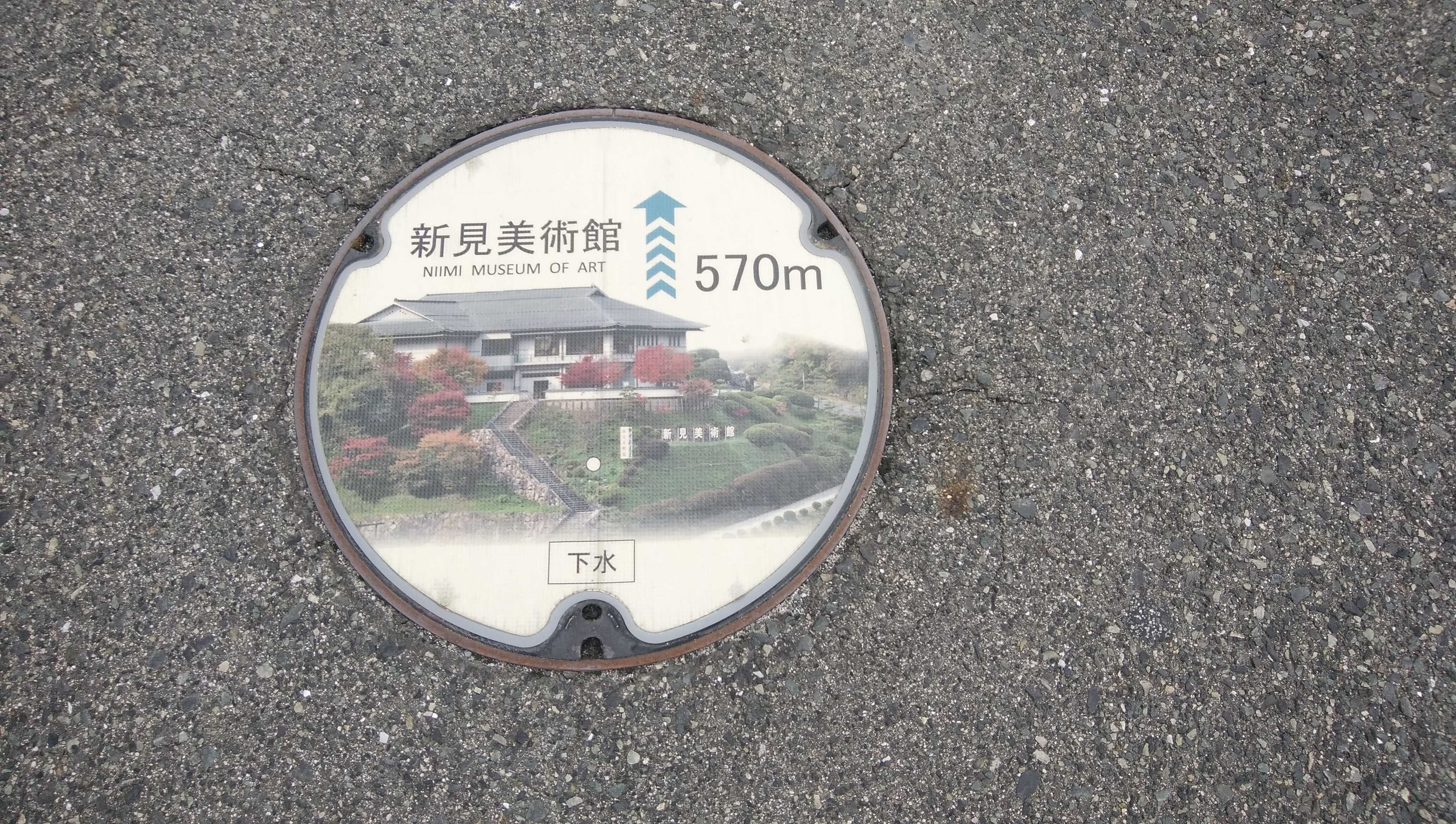 本日、新見駅前で撮影した新見市の下水道蓋です。新見美術館の道案内になっています。