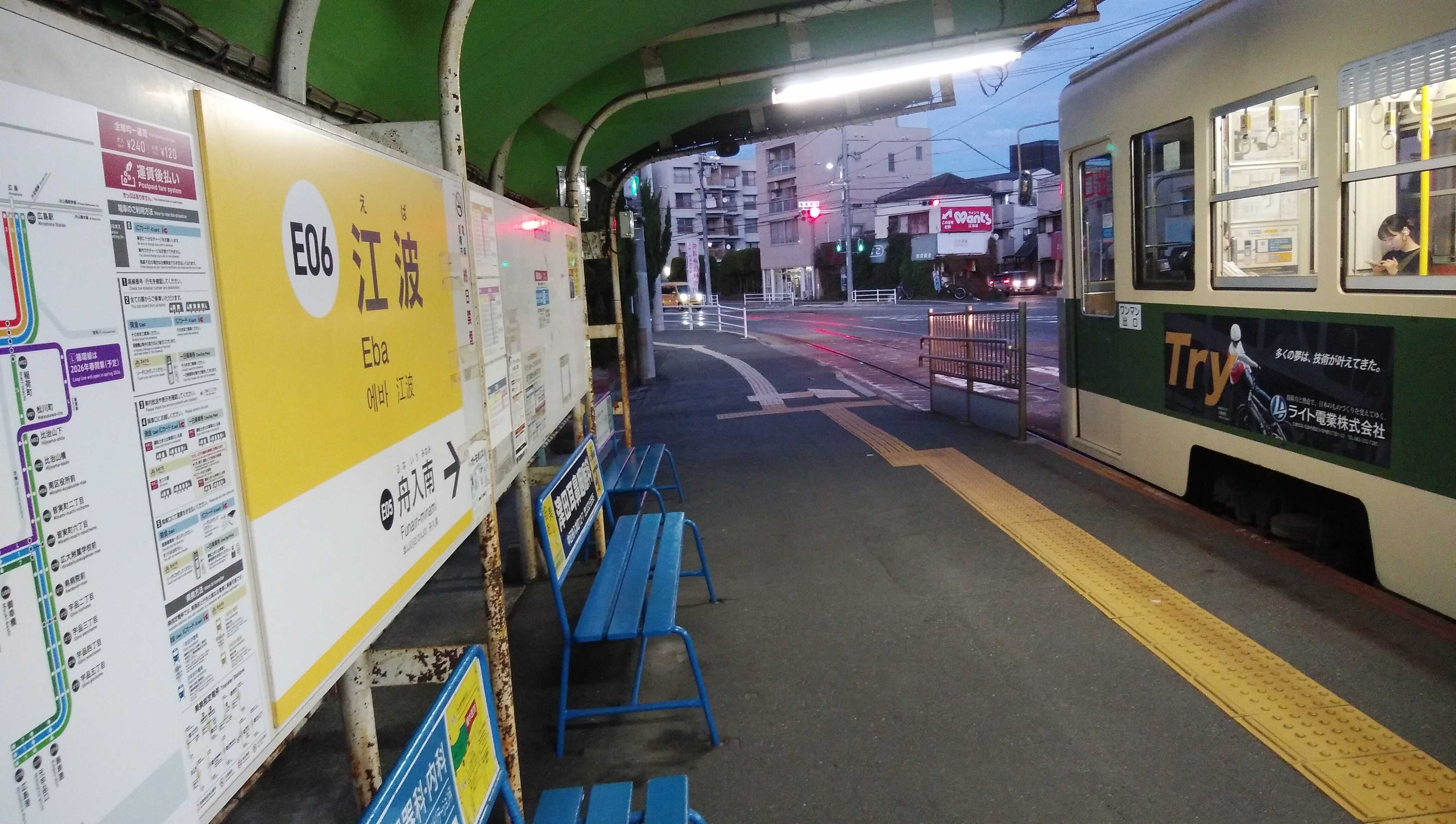 今日、広島電鉄江波線を踏破しました。終点江波停留所の先は車庫になっています。