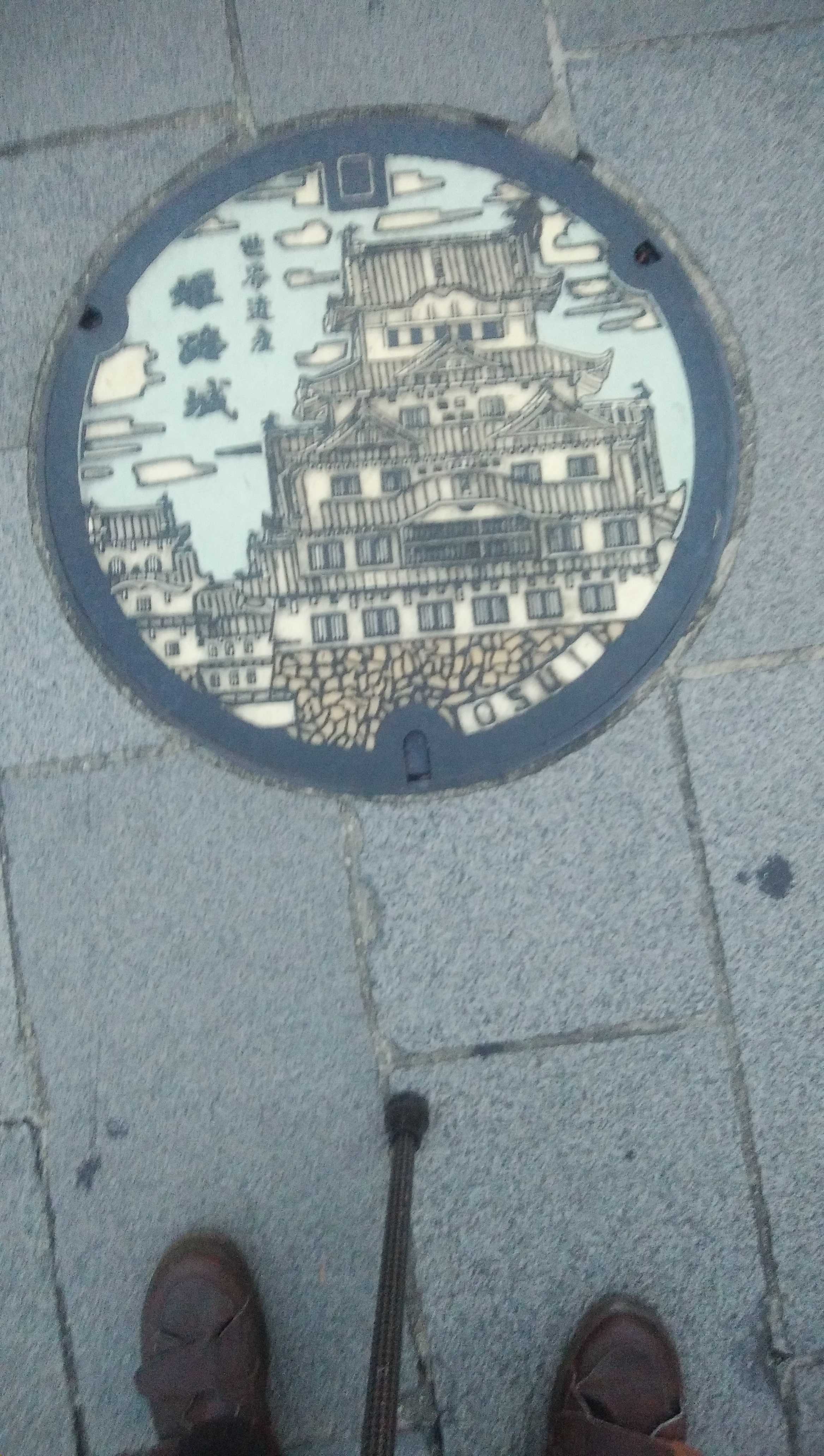 昨日、姫路駅前で撮影した姫路市のデザインマンホールです。姫路城が描かれています。観光案内所で配布しているマンホールカードもこの図柄です。