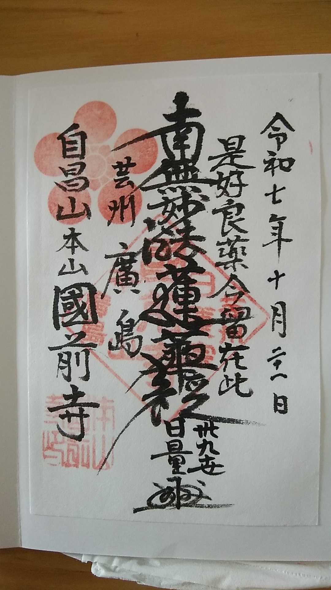 2025年10月21日の広島二葉の里寺社巡りの続きです。東照宮の次に國前寺(広島市山根町32―1)を参拝しました。日付を自分で入れる書き置きの御首題がいただけました。「是好良薬今留在此」は、法華経に登場する文言で、良薬=お題目をお釈迦様は法華経に留めおいてくださったと言う意味のようです。これまで沢山御首題をいただきましたが、初めて見る文言です。