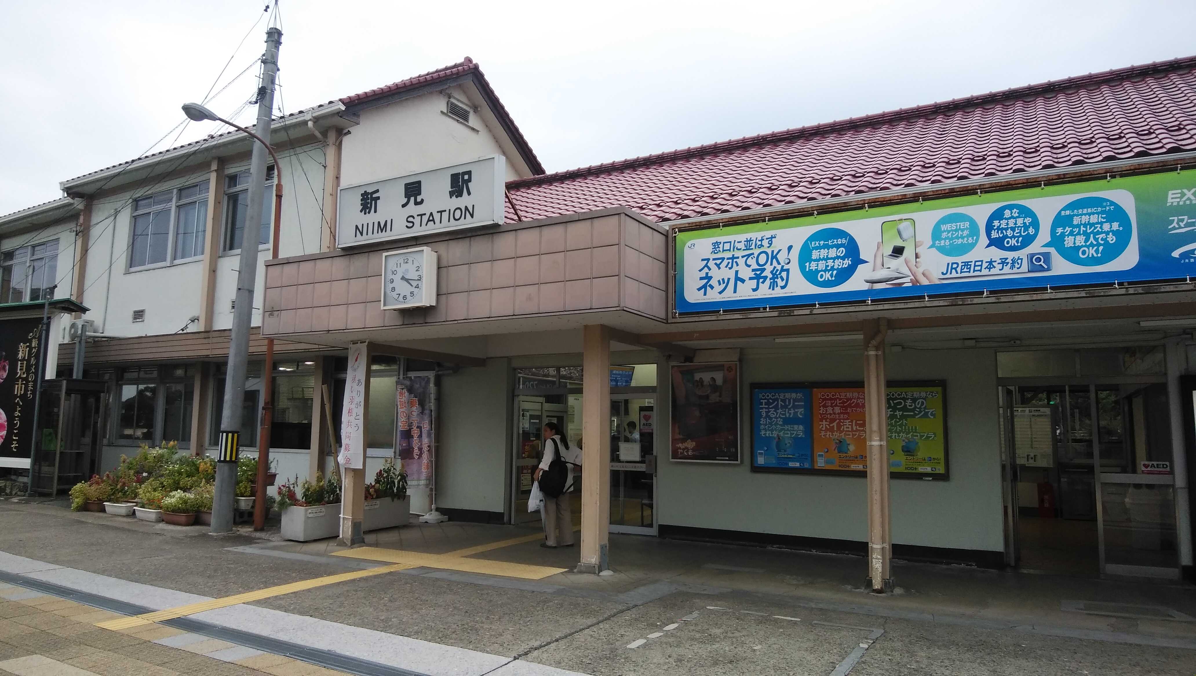 10月21日、広島駅から芸備線で津山へ行く途中乗り継ぎで下りた新見駅舎です。