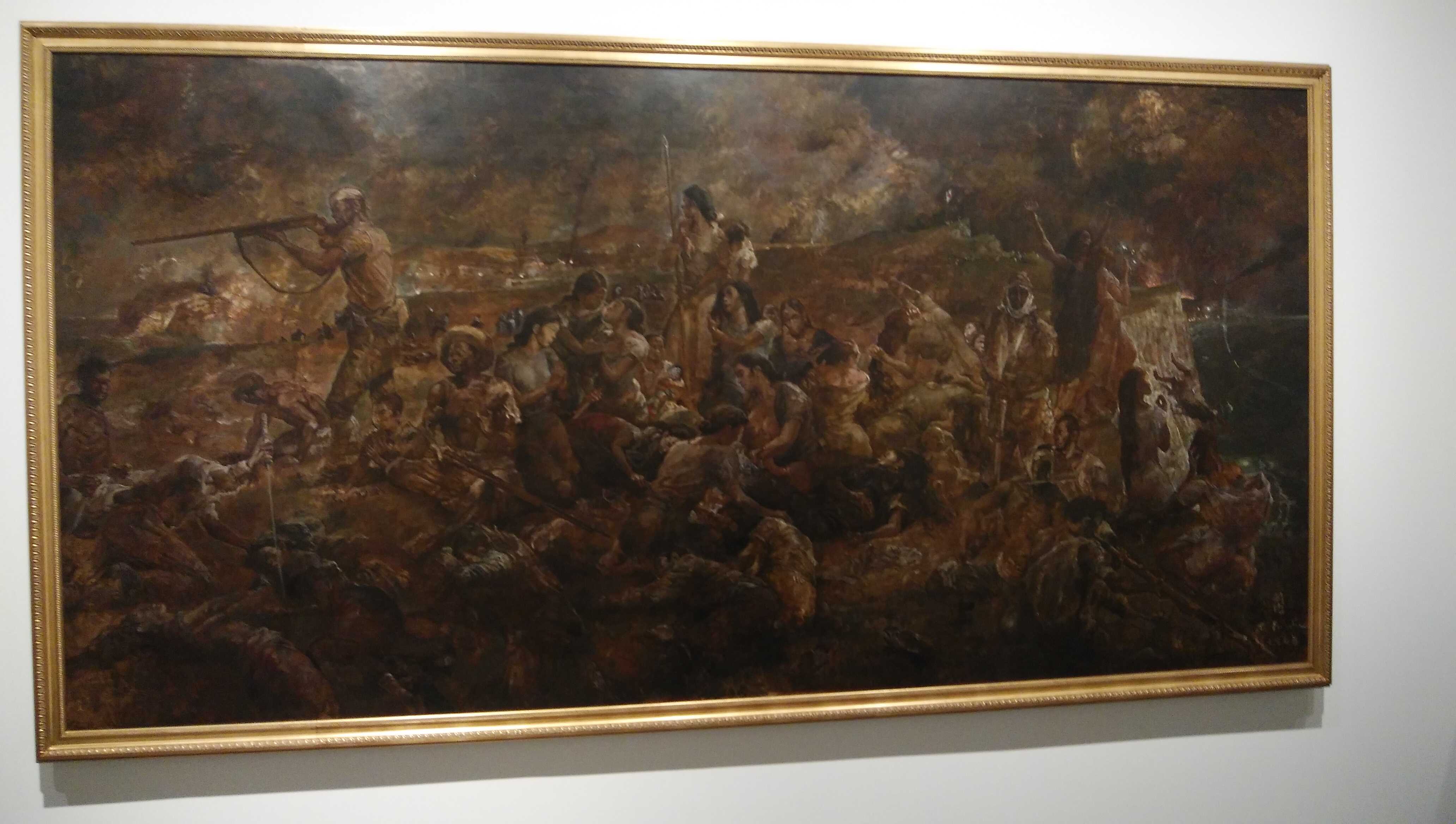 今日、竹橋の国立近代美術館で「記録をひらく記憶をつむぐ」展を見てきました。彩管報国という言葉を初めて知りましたが、絵筆をもって国に尽くすということだそうです。藤田嗣治や小磯良平などの大家の戦争絵画を一度に観る機会を与えてくれた良い企画展だと思います。藤田嗣治の「アッツ島玉砕」や「サイパン島同胞臣節全うす」(下の写真)の凄惨な絵が国意発揚になった時代が日本にあったのは、まぎれもない事実です。NHKの朝ドラ「あんぱん」でいう逆転しない正義とは何なのか、改めて考えさせられます。