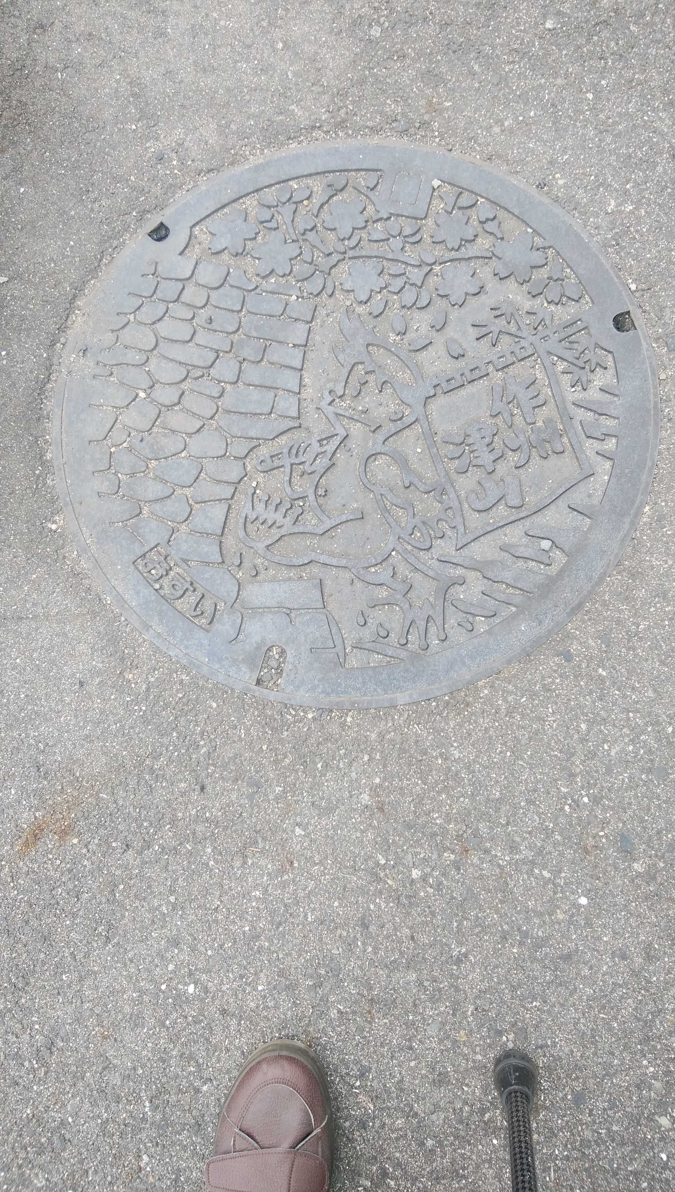つやま鉄道館から津山駅に向かう途中で、撮影した津山市のデザイン下水道蓋です。