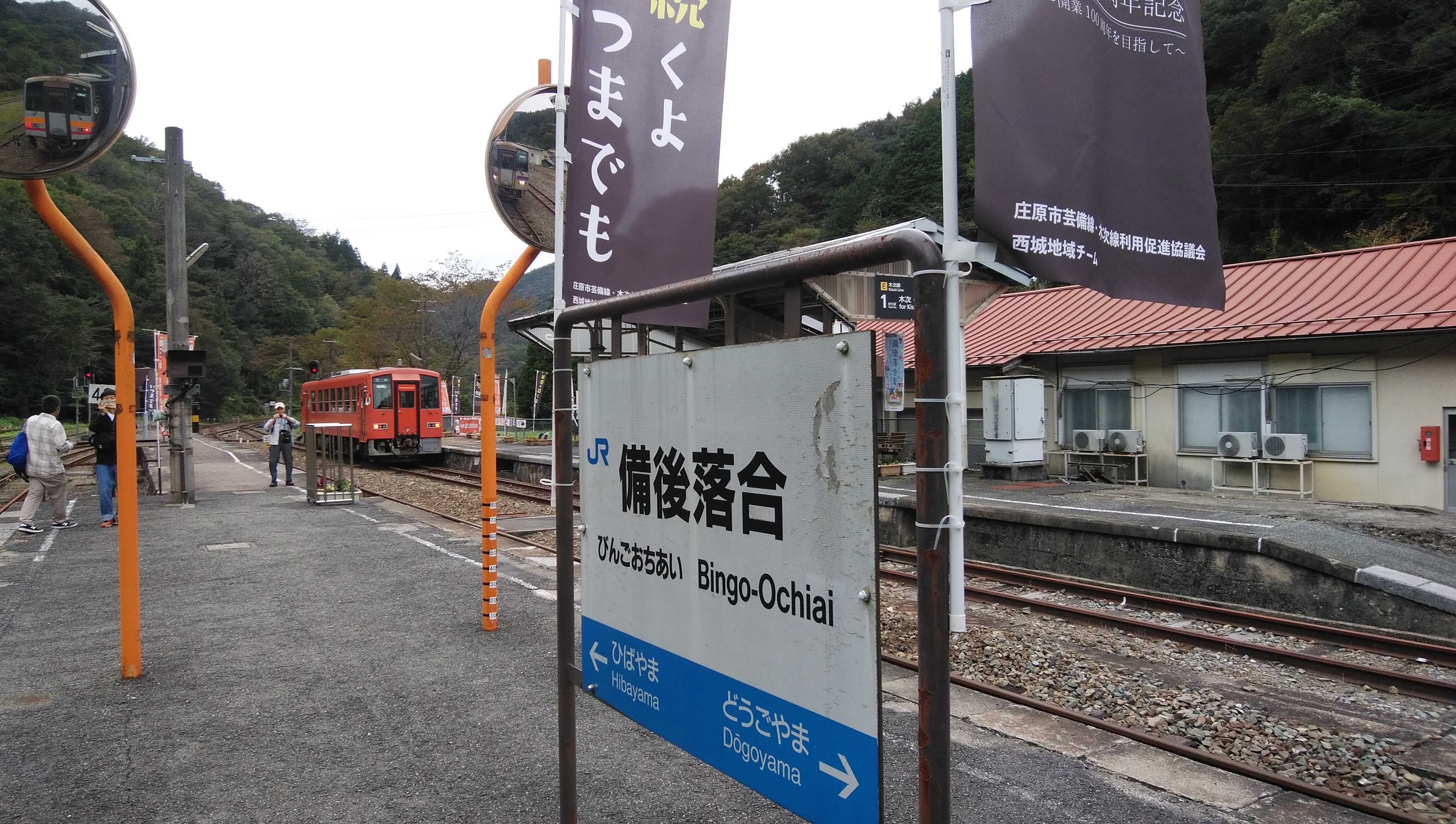 2025年10月21日、乗り継ぎで降りた芸備線のJR備後落合駅のホームから到着した木次線の車両を撮影しました。ボランティアの永橋さんの案内が印象的でした。