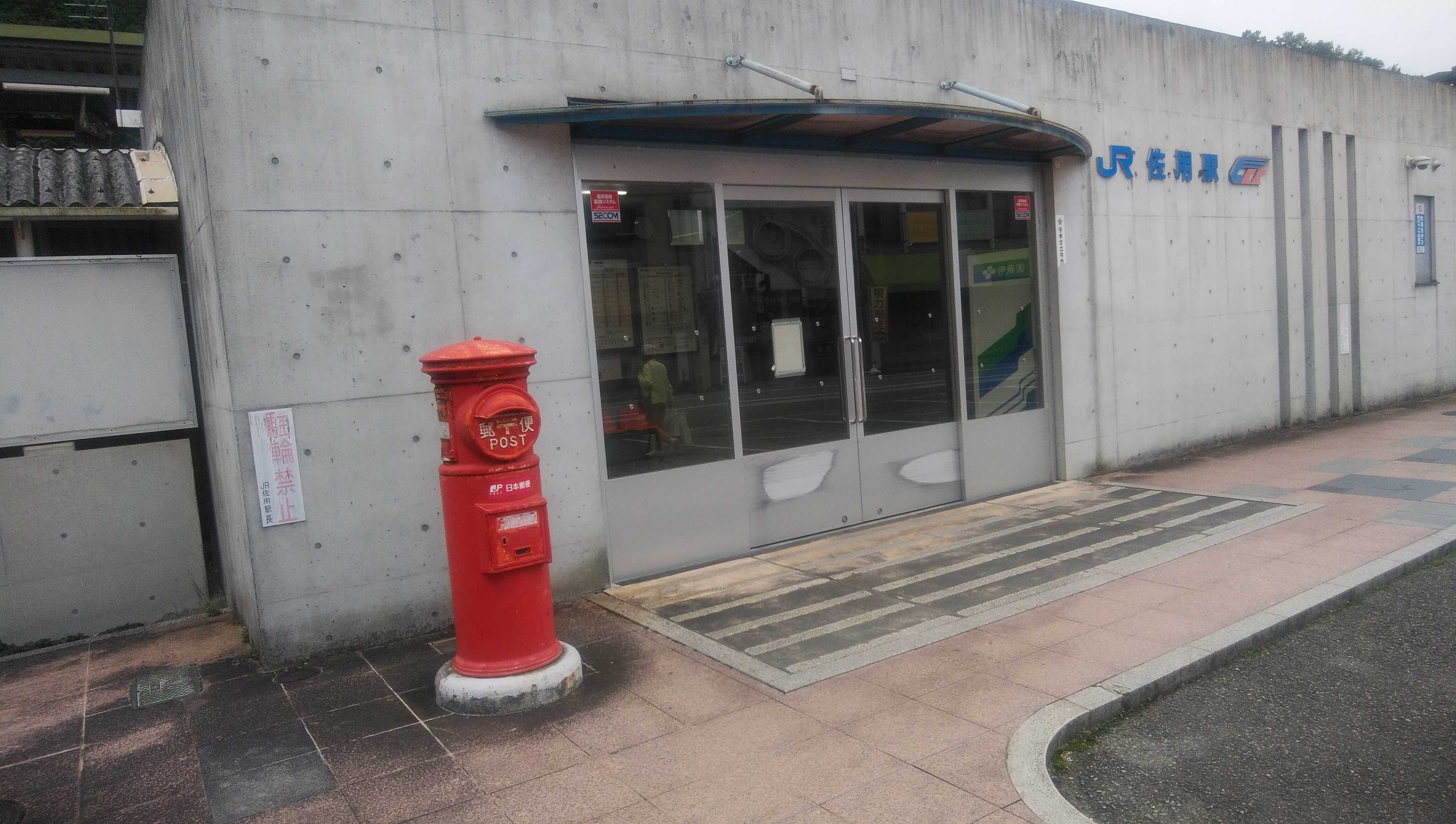 10月22日、乗り継ぎ時間に降りたJR姫新線と智頭急行線が共用する佐用駅前に丸型ポストがありました。
